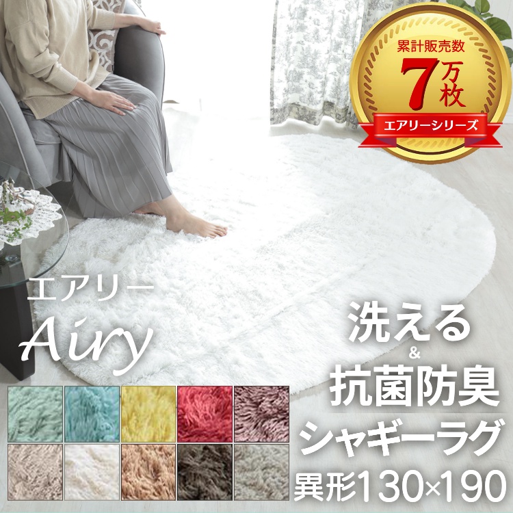 ラグ 円形 丸型 異形 130×190cm カーペット 洗える 抗菌 防臭 滑り止め付き おしゃれ 北欧 かわいい シャギーラグ マイクロファイバー / エアリー 異形