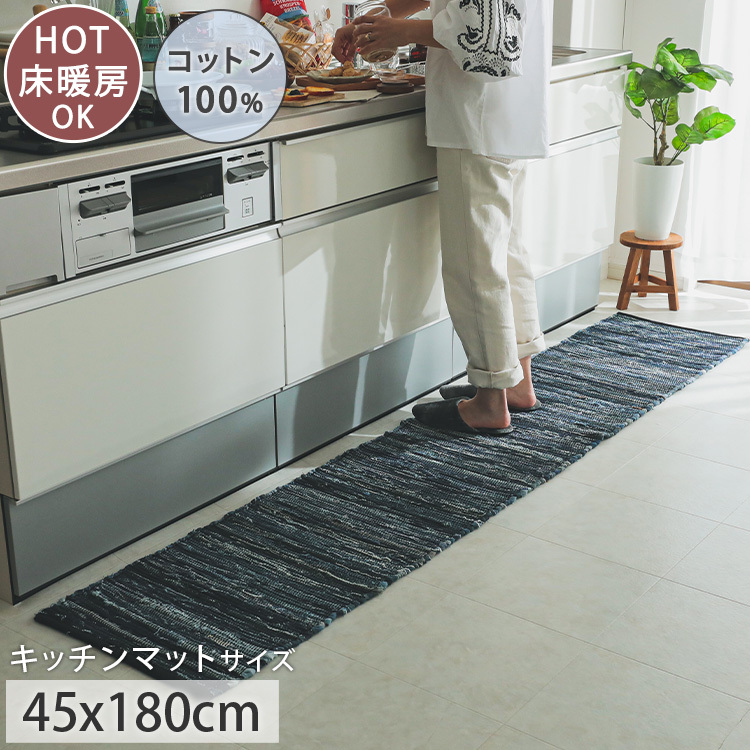 キッチンマット デニム ロングマット マット オルテガ 綿 綿100% オシャレ 西海岸 デニム風 ヴィンテージデニム風 無地 オールシーズン 夏用 ホットカーペット対応 <メーアキッチンマット / 約45x180cm> ラグリー グラムスタイル びっくりカーペット 爆買