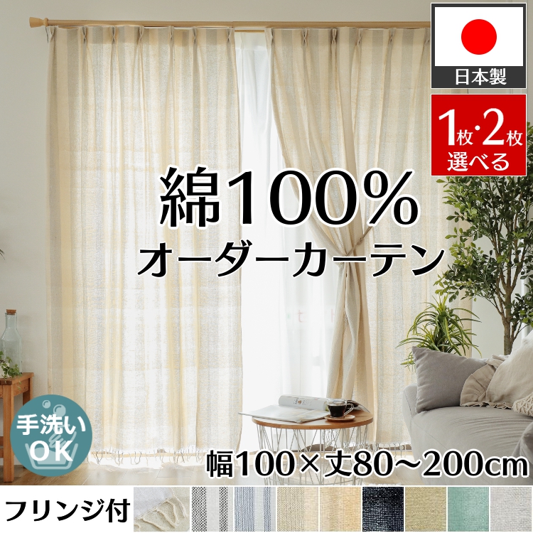 | 注意 | ※ご覧のモニターの環境、撮影環境により実物と色味が異なって見えます。サンプルをご請求いただき実際のお色味を必ずご確認ください。 ※商品名に表記されているサイズ(丈)はカーテンフックのレール取付け部分から測った長さを表記しています。 ※フリンジの長さは個体差がございます。両開き2枚で使用する際は、フリンジの長さにより生地丈がそろわない場合がございますので、予め御了承ください。 ※仕上がりサイズは縫製工程上、2cm程度の誤差がある場合がございます。丈はフックのアジャスターでご調節ください。 ※繊維の特有の色ムラがあり、画面上の生地画像・サンプル生地とは色の差異が生じる場合があります。 ※しわになりやすい為、カーテン生地をたたんだ状態で長時間置かないようにしてください。 ※同じカラーでも染色の具合により個体差がある為に、両開きで取り付けた場合にカラーの差が生じることがあります。 ※天然素材の商品は、お部屋に吊ってるだけで環境の影響を受け伸縮いたします。また生地の織り方・湿度・温度等によって、丈が縮む場合と伸びる場合があります。 天然素材ならではのこととなりますので予めご了承の上ご注文ください。 仕上がりサイズに関しまして、1%未満の誤差につきましては返品交換をお受けいたしかねますので、あらかじめご了承ください。 ※生地本体は現地で生産されているインド綿になります。 ※染料等の匂いが残っている場合は、風通しの良い所でご使用ください。 ※湿気・汗・摩擦等により色落ち・色移りする場合がございます。 ※縫製糸のカラーに個体差がある為に両開きで取り付ける際、異なる場合がございますので、予め御了承お願いします。 ※製造過程で起こりうるものの中で、以下の状態が見られる場合がありますが不良ではございません。 【他色糸の混入・糸の飛び出し・生地の織ムラ・わた殻の混入・縫いはじめのマーキング糸】 ※上記に関しての返品交換はお受けできかねます。 |