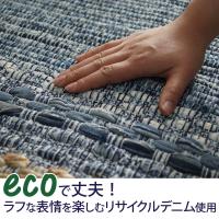 | 注意 | ※ご覧のモニターの環境、撮影環境により実物と色味が異なって見える場合が御座います。 ※リサイクル素材を使用しているため、糸のほつれが生じる場合がございます。 ※実際のユーズドジーンズ生地をハンドメイドで織っているため、色・柄・織、ステッチに個体差があります。 ※製品特有のにおいがありますが、使用とともに薄れます。 ※カーペットの染料が色落ちし、床面や衣類等に色移りする場合があります。湿ったり、濡れた状態では色落ち、移染しやすくなります。 |