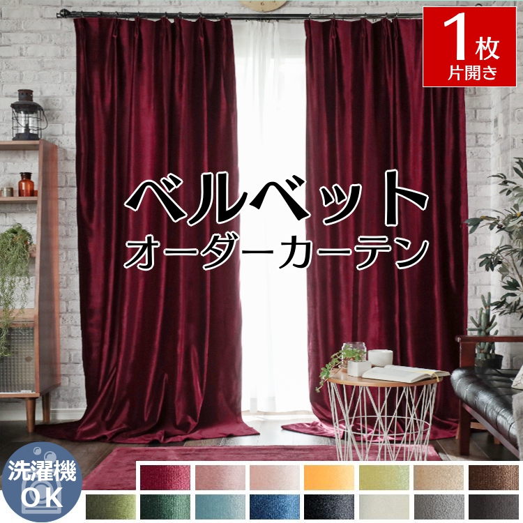 カーテン 1枚 オーダー ベルベット ベロア 無地 おしゃれ 洗える エレガント アンティーク ヴィンテージ 北欧 断熱 / シャビーベルベット 片開き