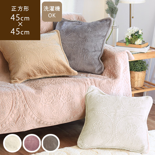 クッションカバー 45×45cm 高級感 キルト シンプル 洗える ベルベット調 起毛生地 おしゃれ シャティヨン