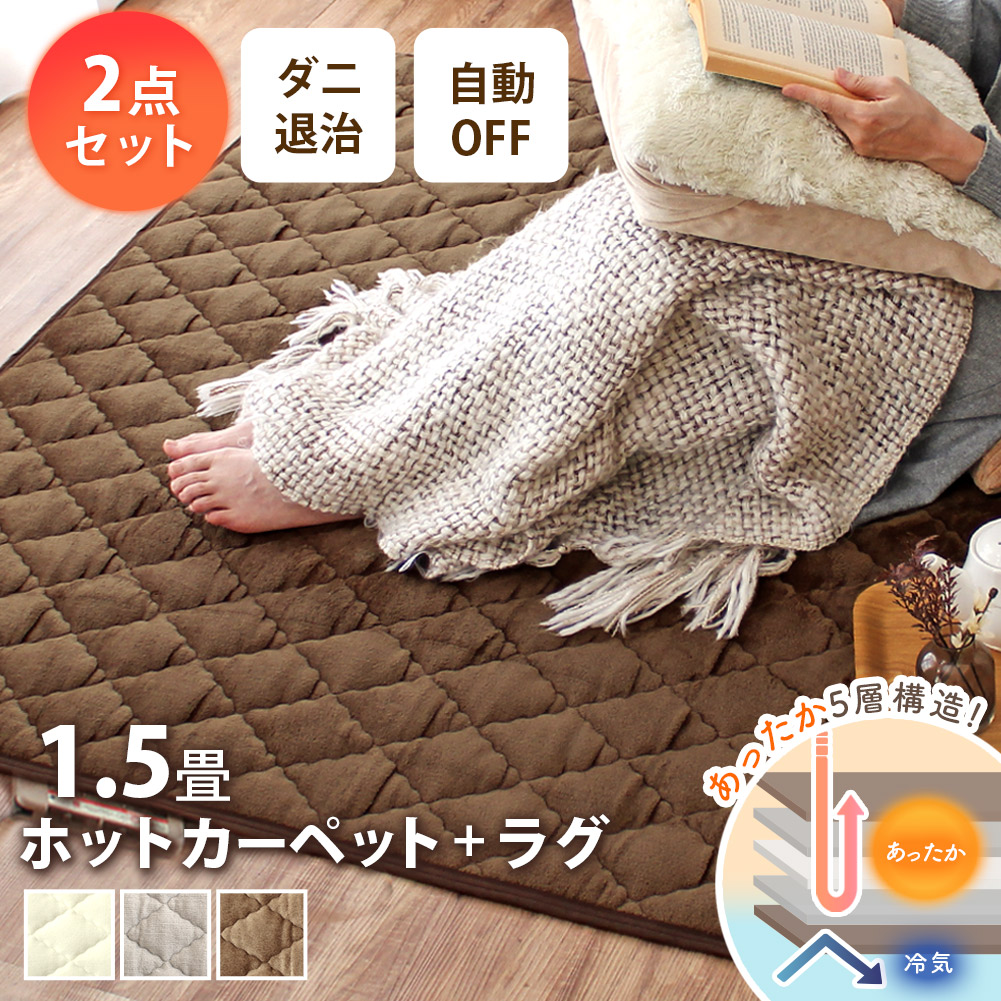 ホットカーペット 1.5畳 カバー付き ラグ おしゃれ ダニ退治 折りたたみ 節電 電気カーペットセット ランミン1.5畳 爆買