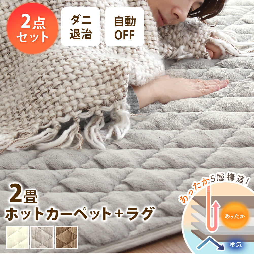 ホットカーペット 2畳 カバー付き ラグ おしゃれ ダニ退治 折りたたみ 節電 電気カーペットセット ランミン2畳 爆買