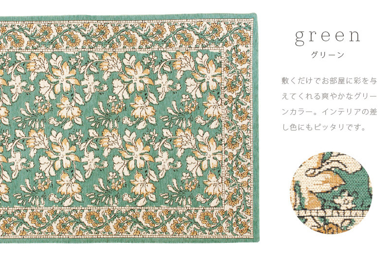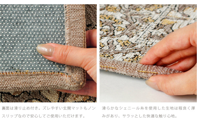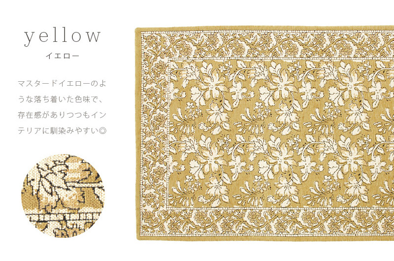 芸術性の高いクラシカルな風合いに、目の詰まった重厚感ある質感が魅力のゴブランシェニールマット。まるで絵画のような繊細かつ大胆な植物柄は、敷くだけでお部屋がパッと華やぎ、上品さの中にも確かな存在感を感じられます。生地にはしなやかでサラッとした触り心地のシェニール糸を使用し、遊び毛が出にくくお手入れやお掃除も簡単♪季節を問わず快適に使えて、耐久性にも優れた逸品です。