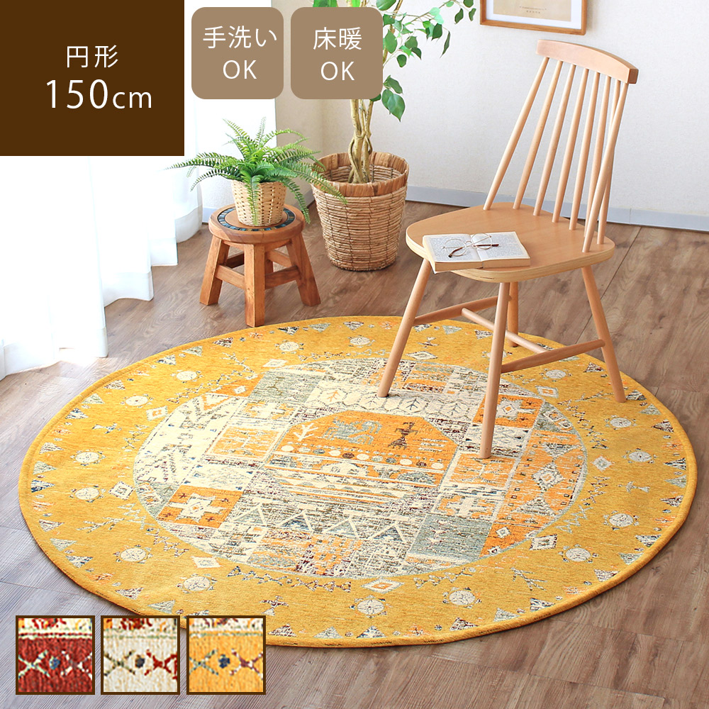 ラグ ゴブラン織り 円形150cm ギャベ柄 高級感 洗える ラグマット カーペット 絨毯 床暖房 ホットカーペット対応 おしゃれ リュイン