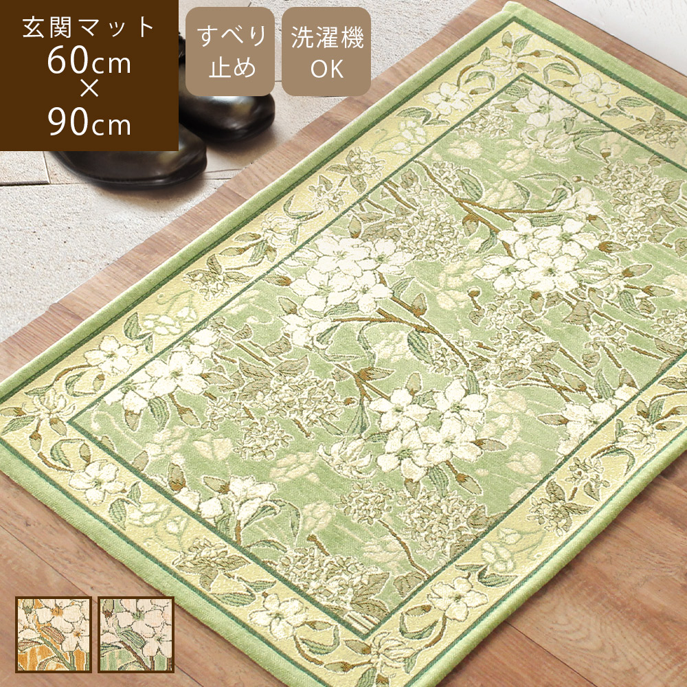 玄関マット ゴブラン織り 60×90cm 滑り止め付き 洗える 高級感 花柄 おしゃれ 屋内 室内 ラグマット アスセーナ