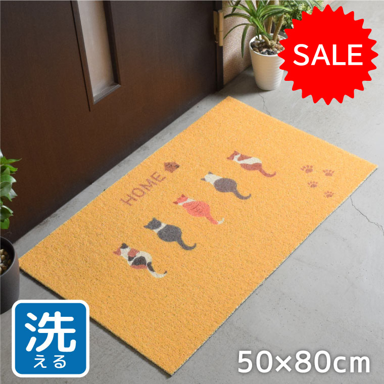 セール 5%値下げ中! 玄関マット 屋外 ゴム 泥落とし 泥除け おしゃれ 50×80cm イエロー 黄色 ドア 置き配 大判 大きい ウエルカム猫1