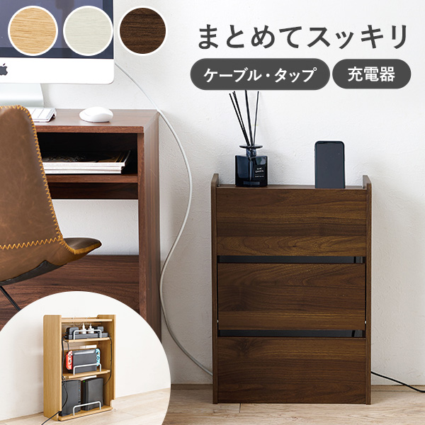 ケーブルボックス ルーター収納 幅39.5cm 3段 ホコリ予防 配線収納 小物置き 充電ステーション タブレット スマートフォン 木製 おしゃれ タピオ