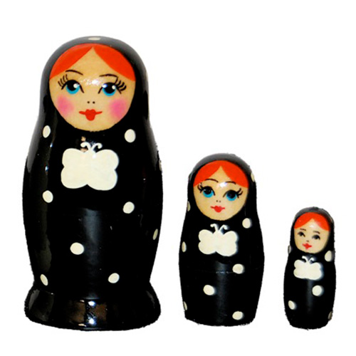 水玉マトリョーシカ 3個組 (ブラック)モノトーン