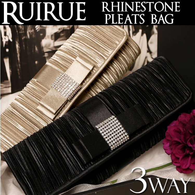 「BA386」パーティーバッグ パーティー 結婚式 二次会 フォーマル バッグ エレガント お呼ばれドレス ラインストーンリボンプリーツバッグ