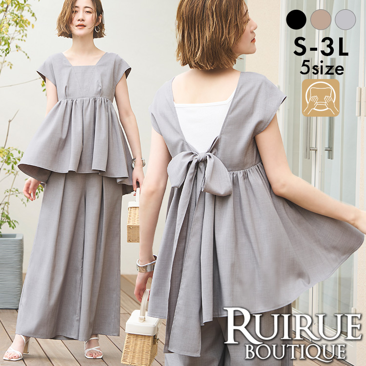 | バックリボンペプラムジレ&ワイドパンツセット(CPA1384) |