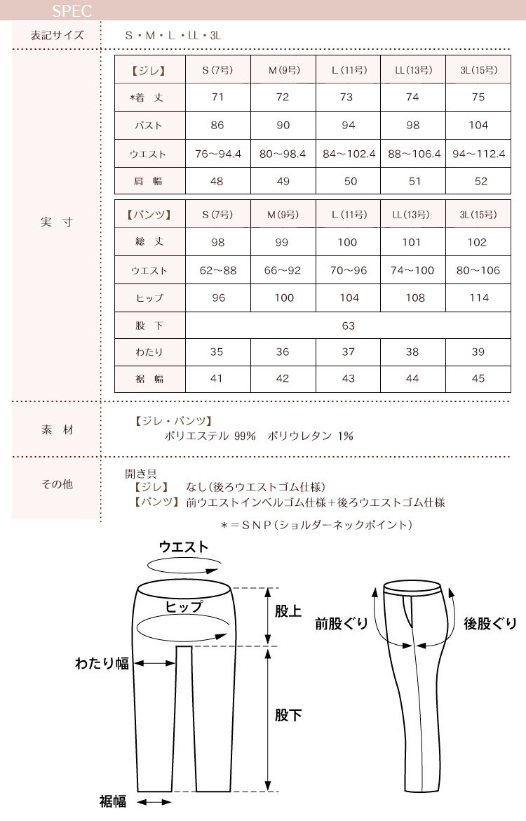 総丈/ウエスト/ヒップ/股下/渡り/裾幅