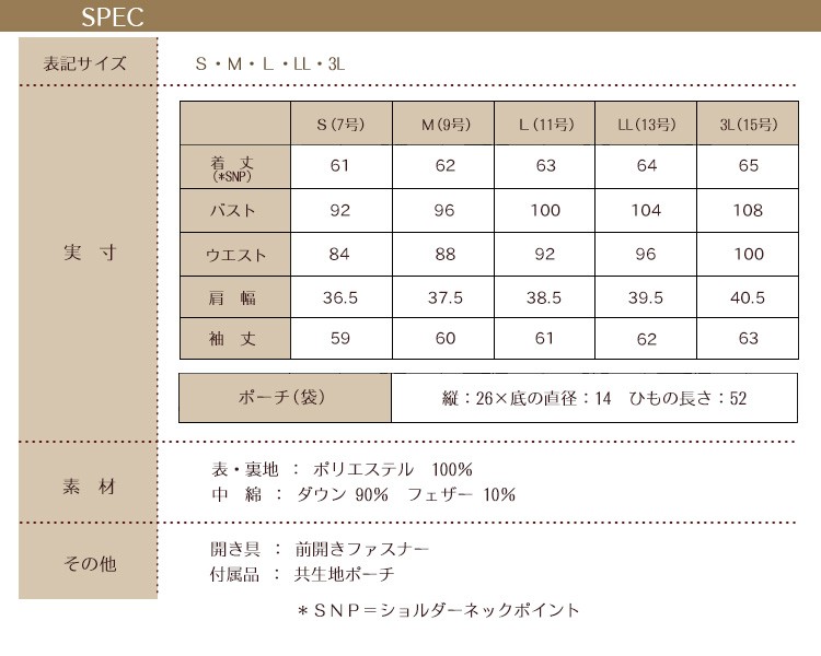中 綿:ダウン 90% フェザー 10%