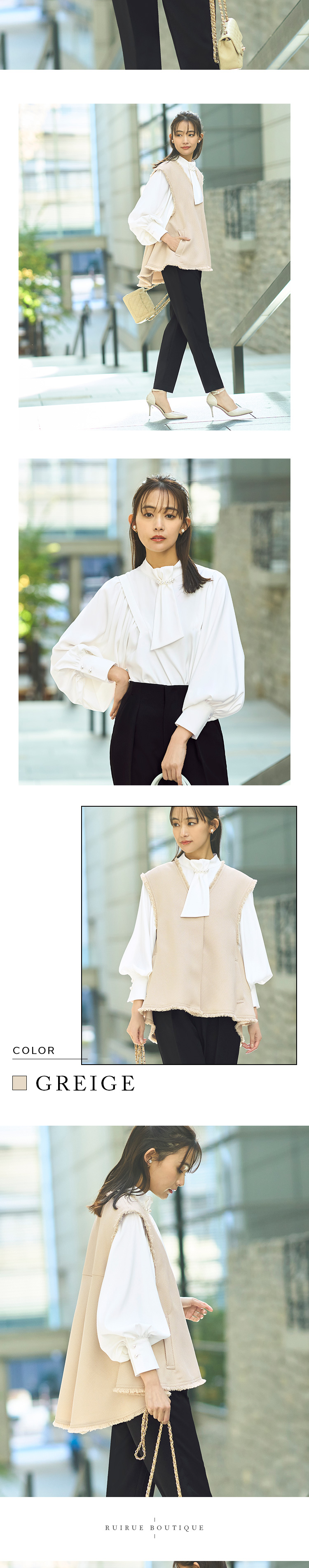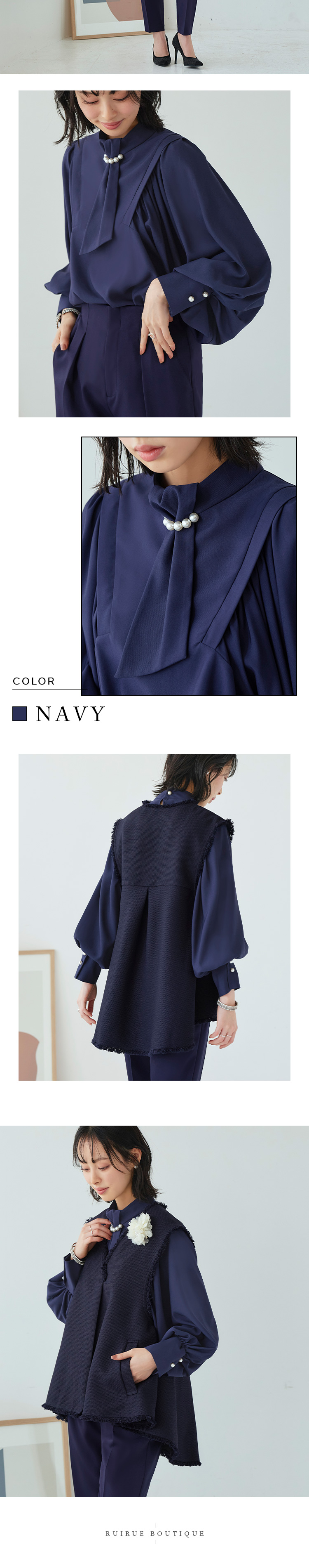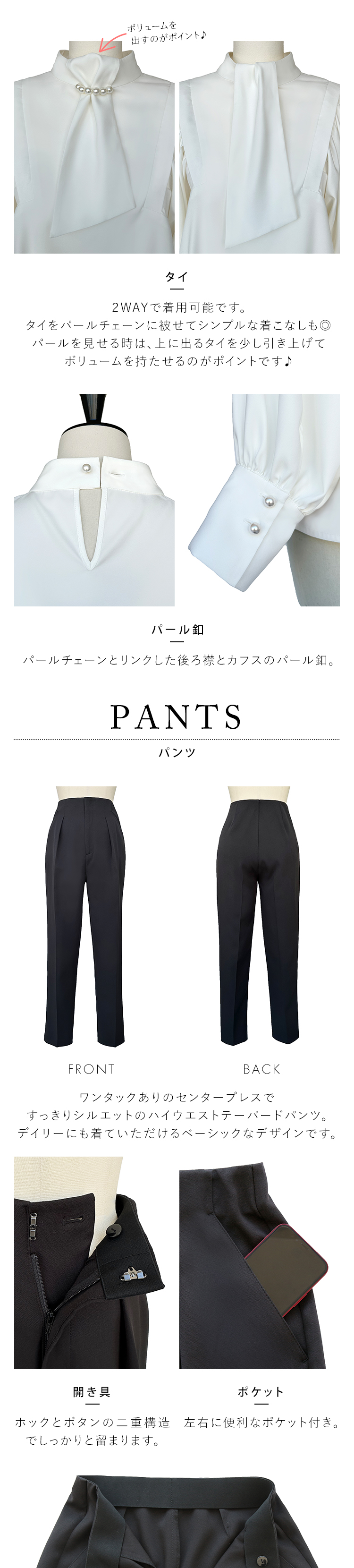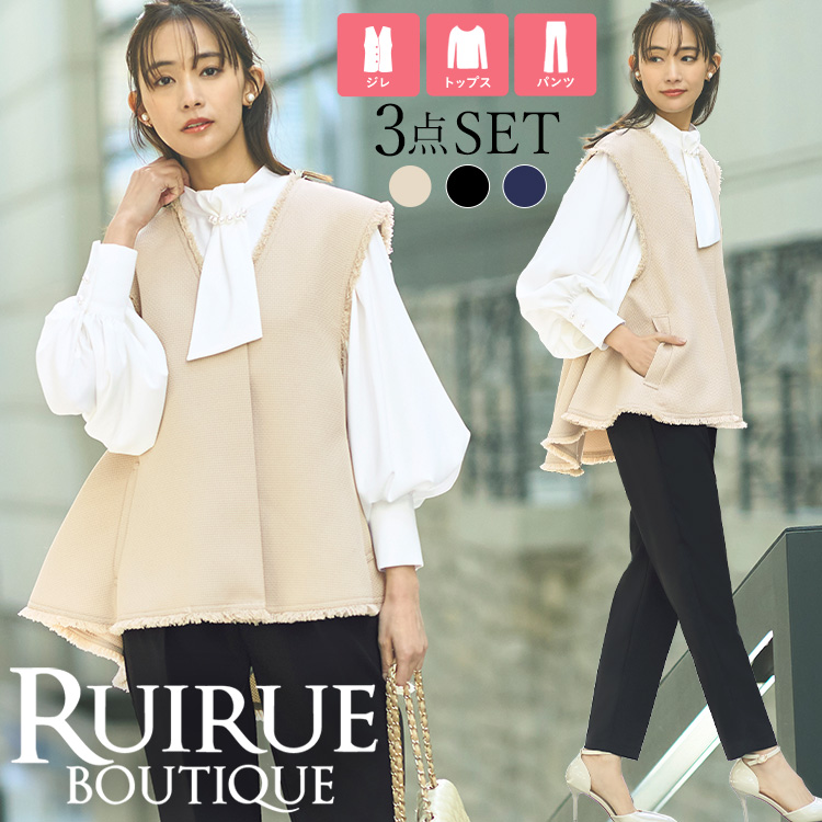 | 【3点セット】バスケットツイードジレ&タイパールチェーンボリューム袖ブラウス&テーパードパンツ(SU1340) |