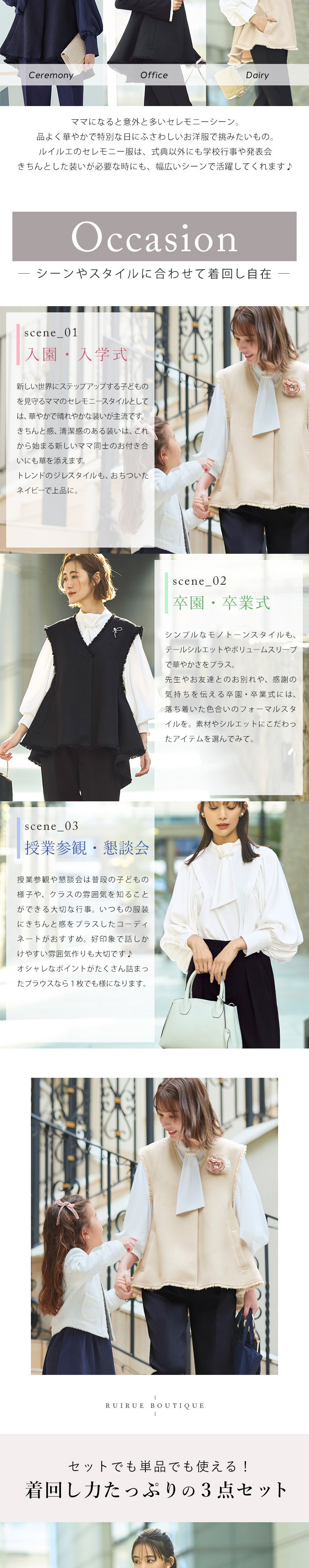 レディース ママスーツ セットアップ セレモニー 入園 入学 卒業 卒園式 七五三 母親 服装 ミセス ジレ ブラウス パンツ 50代 40代 30代 上品 洗える ストレッチ