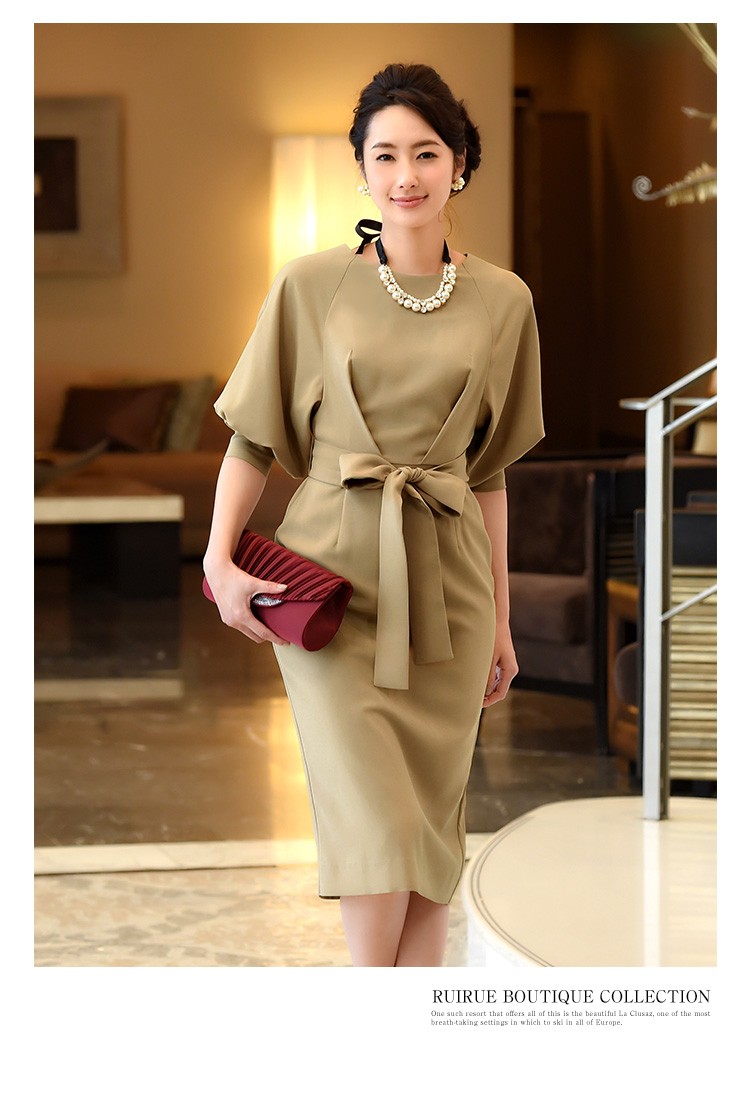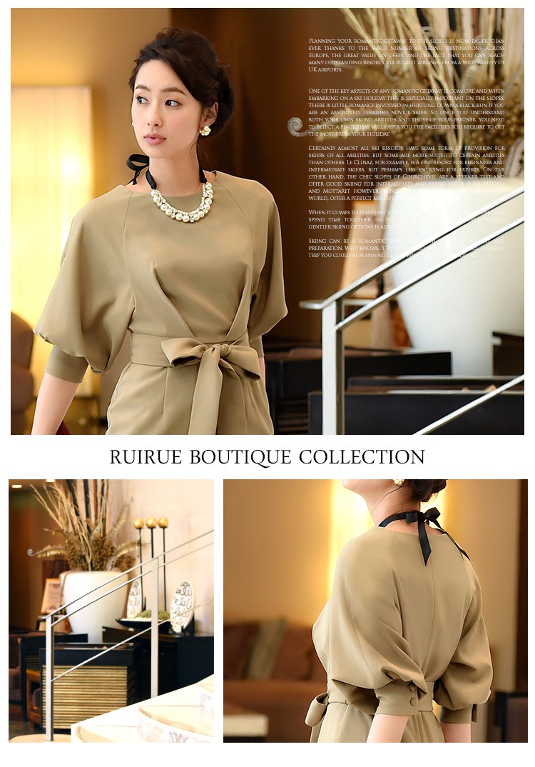 グラマラスにスタイルアップをお約束!♪ ロング&リーンシルエットが美しいバルーンスリーブワンピース(U549) |