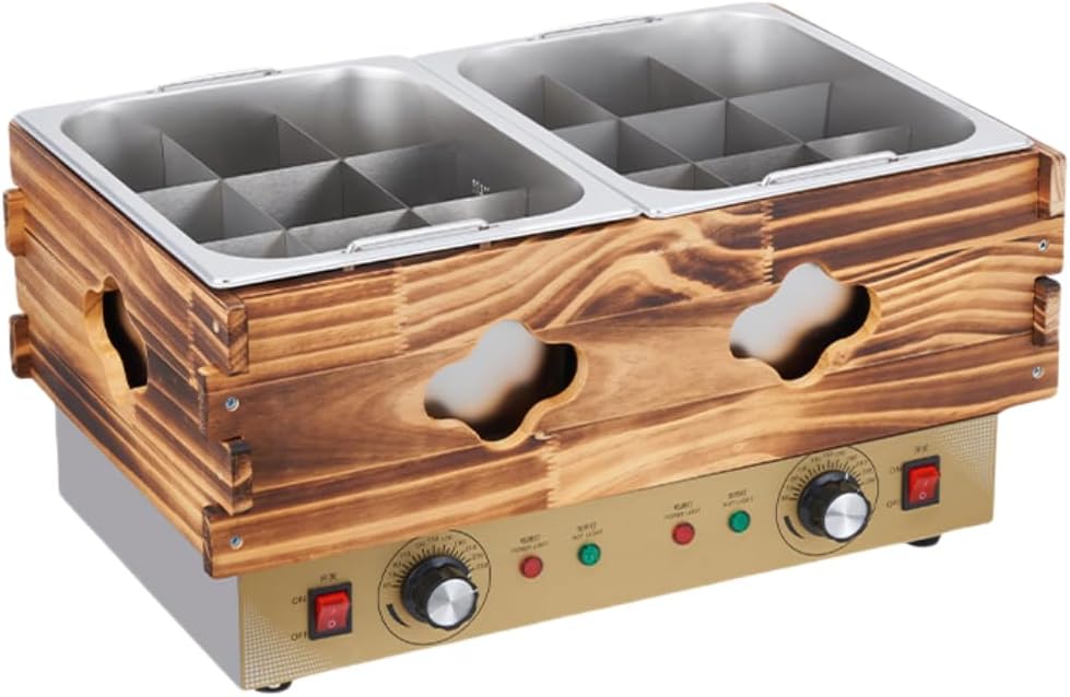 大容量のおでん鍋は、大人数での調理に最適です。鋳造アルミニウム加熱プレートは、通常の加熱チューブよりも効率的で長持ちします。外装は炭化木、内釜はステンレス製で、食材の味を引き立てます。防塵カバー付きで、温度を効果的に保ちます。