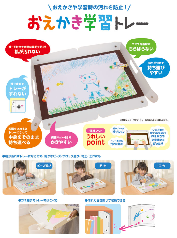 おえかきや学習時の汚れを防止!■ガード付きで余計な筆記を防止!机が汚れません。