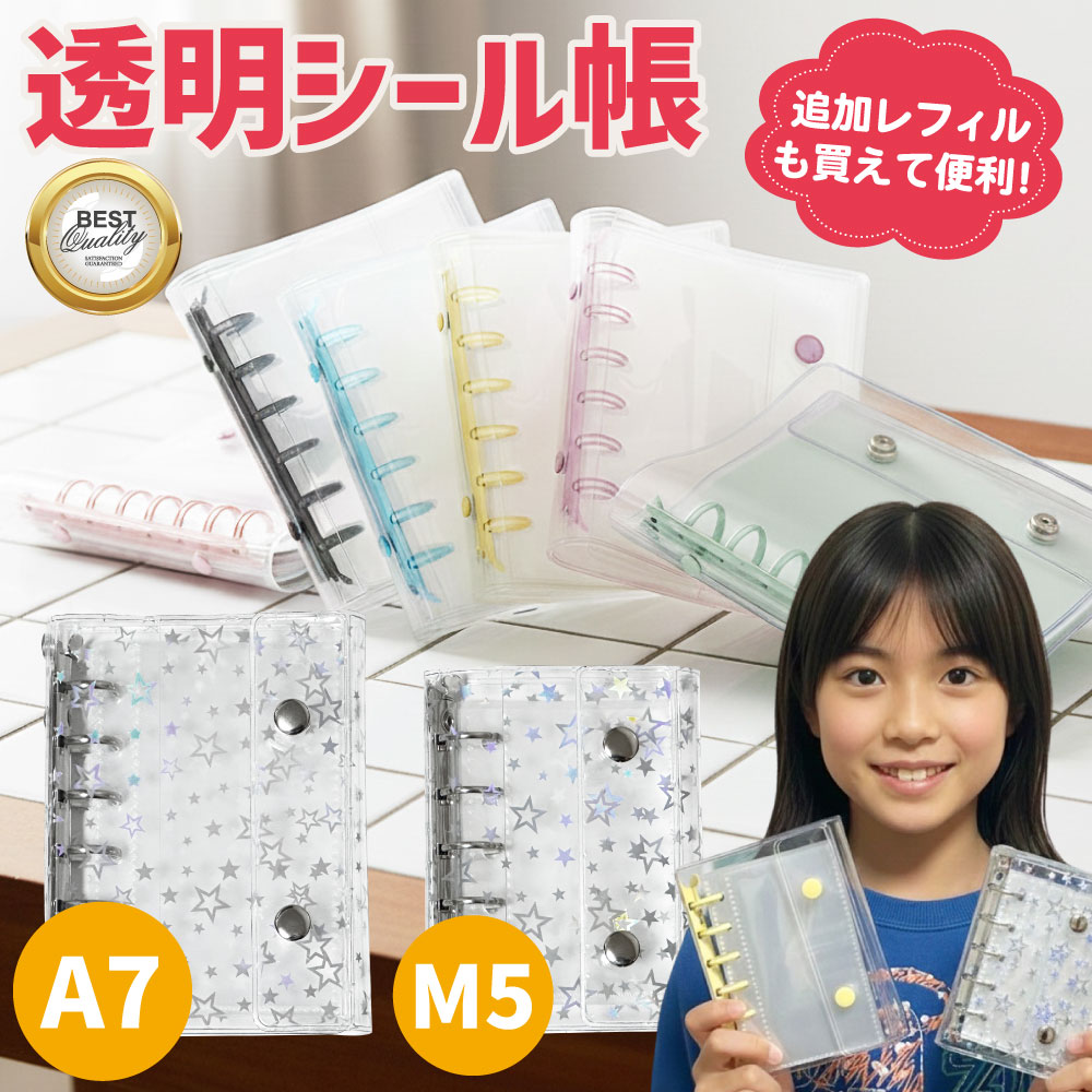 シール帳 バインダー 透明 クリア M5 A7 6穴 5穴 リフィル シールバインダー 女の子 男の子 推し活グッズ キラキラ