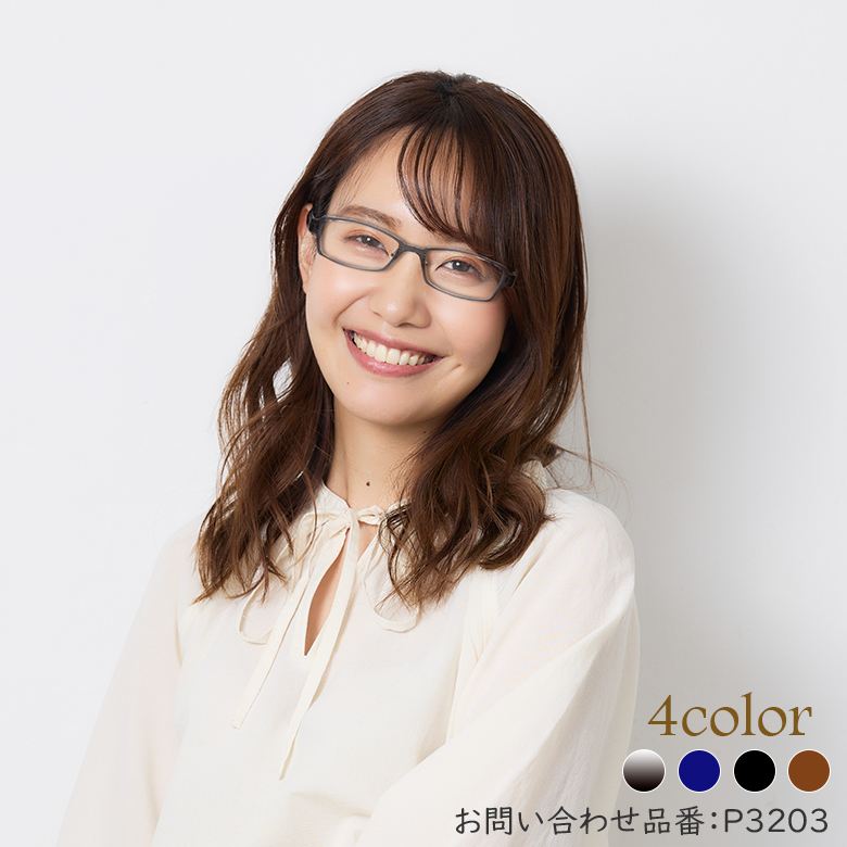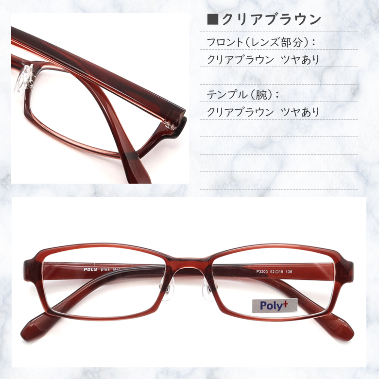 P3203 52サイズ シンプルデザイン 軽量 TR90 グリルアミド レンズ付き眼鏡セット Poly+ メガネ通販 めがね 度付きメガネ