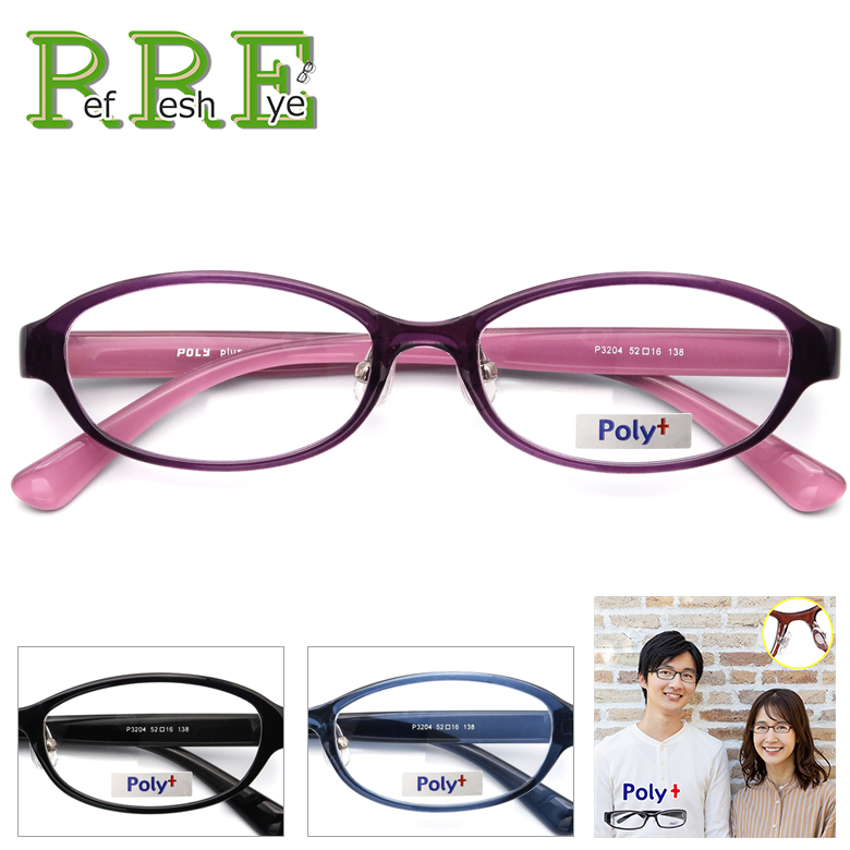 P3204 52サイズ シンプルデザイン 軽量 TR90 グリルアミド レンズ付き眼鏡セット Poly+ メガネ通販 めがね 度付きメガネ