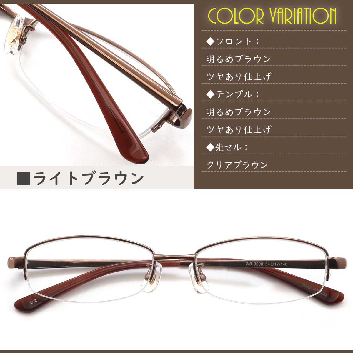 メガネ 度付き WB3298 54サイズ ハーフリム(ナイロール)シンプルデザイン 眼鏡フレーム 度付きメガネ