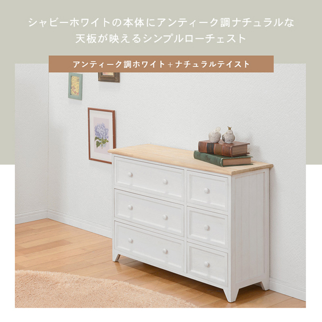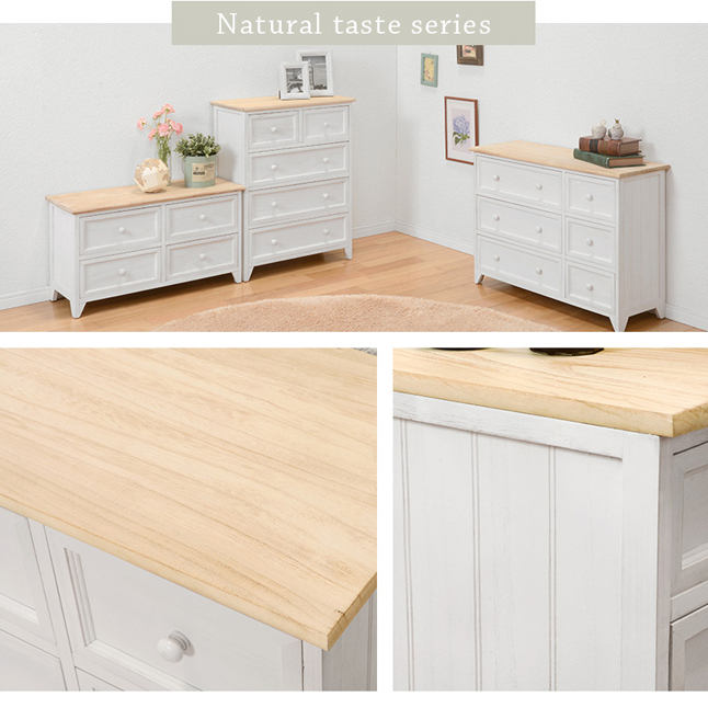 アンティーク調ナチュラルな天板が映えるシンプルチェスト。