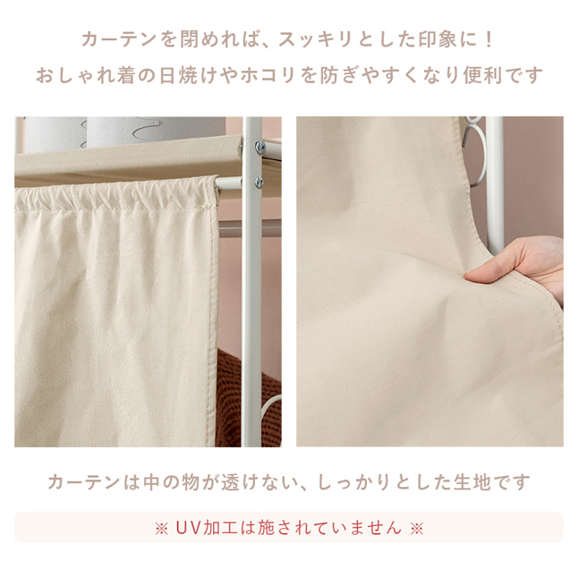 カーテン付きで日焼けやほこりを防ぎながら目隠しもできます。