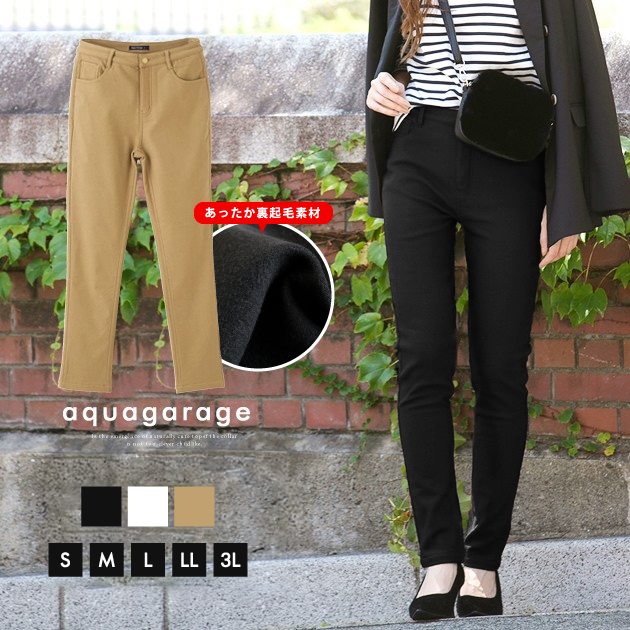 あったかスキニーパンツ 秋冬 裏フリース レディース ブラック ホワイト ベージュ大きいサイズ ストレッチ