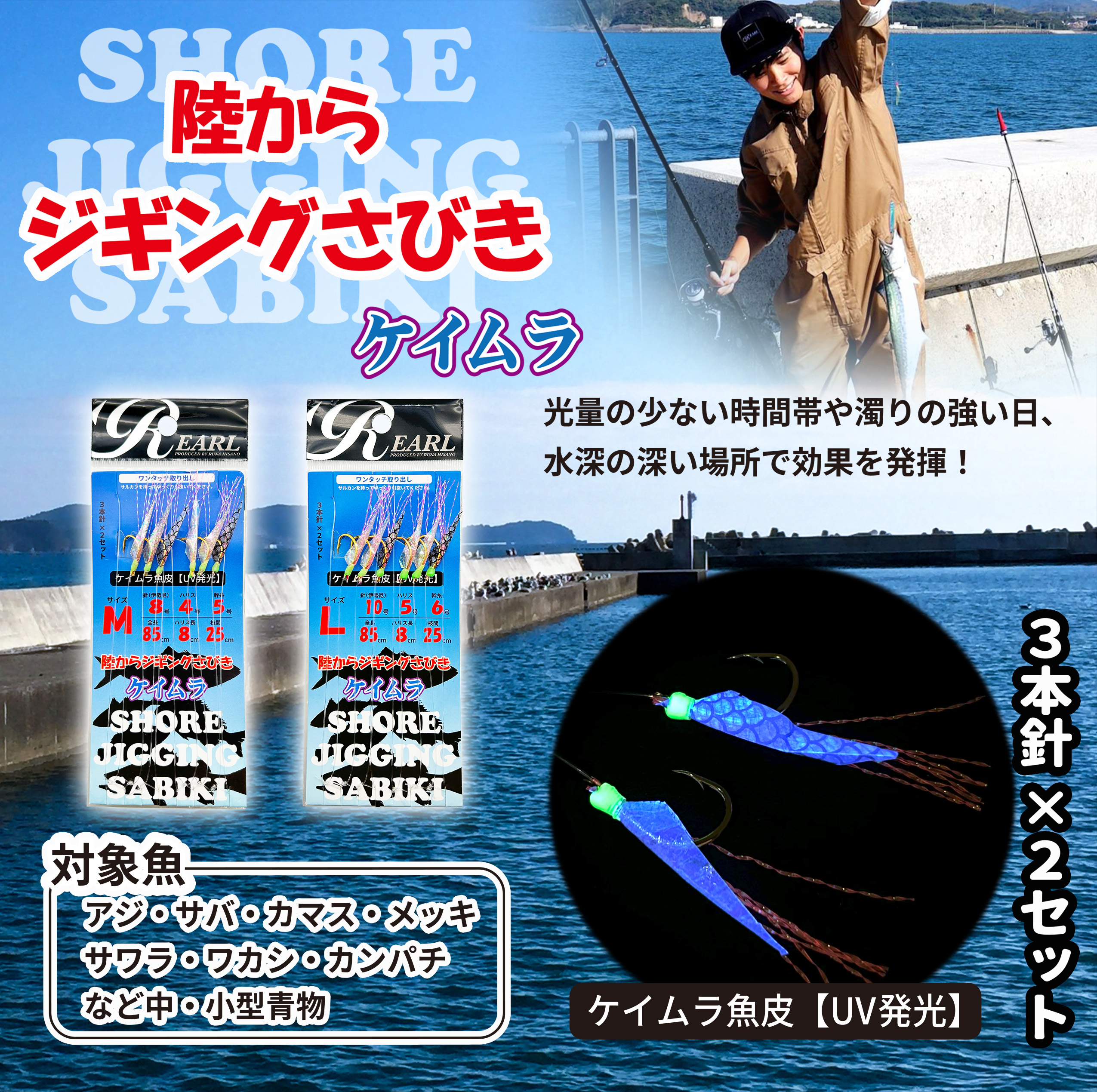 ルナヒサノ 仕掛け 陸からジギングサビキ ケイムラ M/L 3本針×2セット