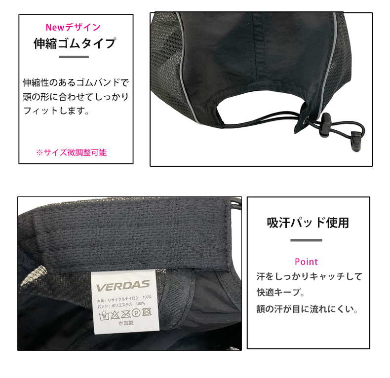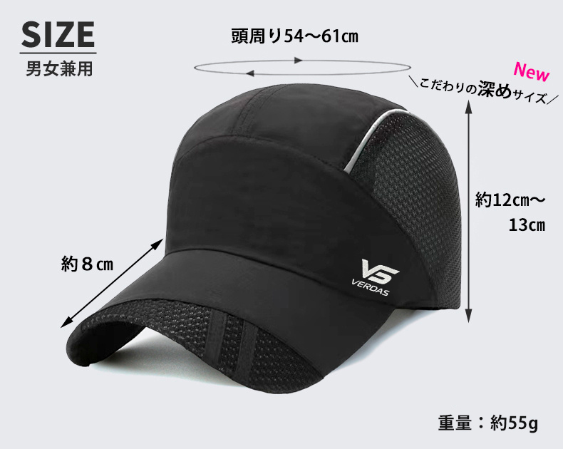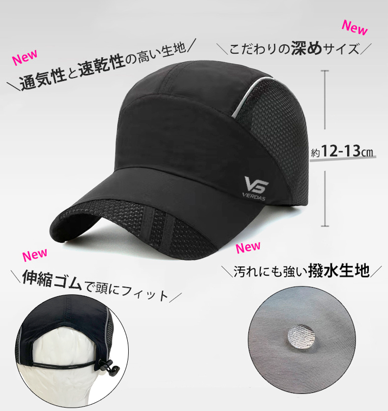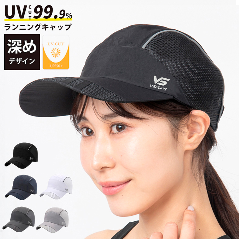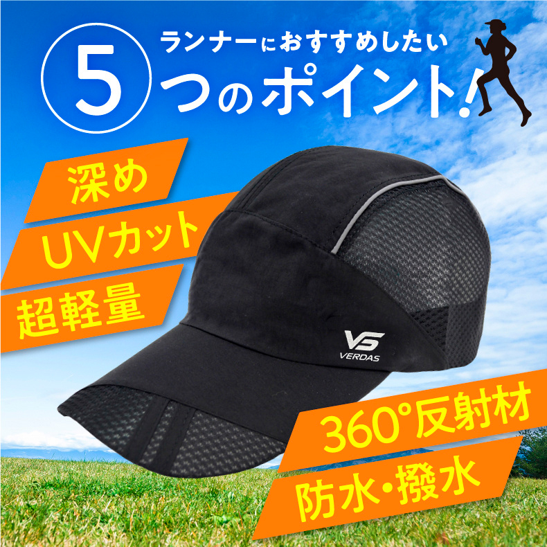 VERDAS正規品 ランニングキャップ シンプル 深め UPF50 UVカット スポーツ メッシュ ジョギング 日よけ 防水 反射材 帽子 レディース メンズ