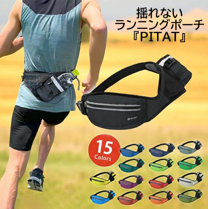 PITAT PRO ランニング マラソン 給水ポケット付き スマートフォン ウエストバック 揺れにくい ボトルポーチ ランニングポーチ ウエストポーチ 防水