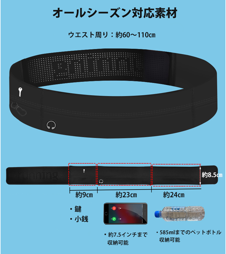 ランニングポーチ 揺れない マジックテープ ウエストベルト マラソン ジョギング ボトル収納 ウエストポーチ 防水 スポーツ アウトドア gym