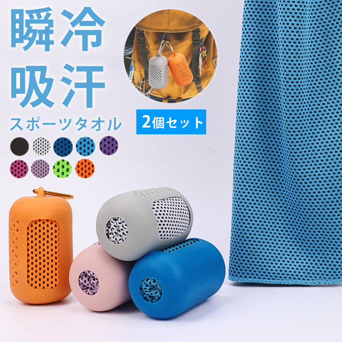 2個セット ひんやりクールタオル UPF50 夏用 ランニング 吸汗 速乾 カラビナ付き スポーツタオル ジョギング 紫外線対策 日焼け防止 レディース メンズ