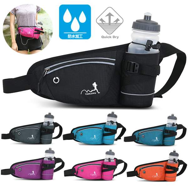 LUHU ランニング マラソン 給水ポケット付き ウエストバック 揺れにくい ボトルポーチ 軽量モデル フィットモデル ランニングポーチ ウエストポーチ 防水