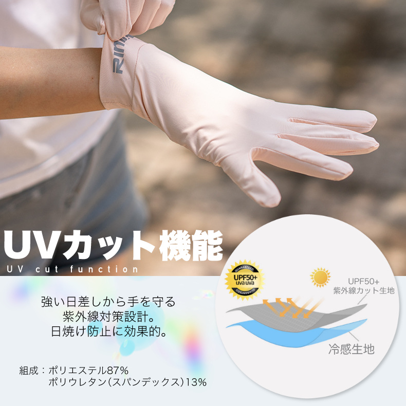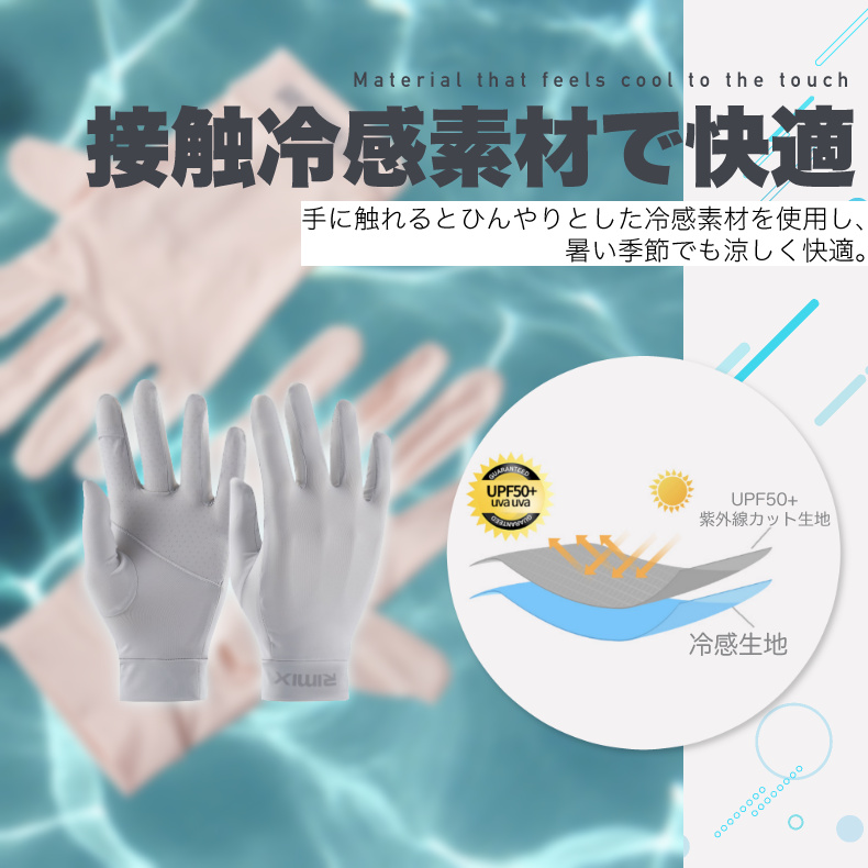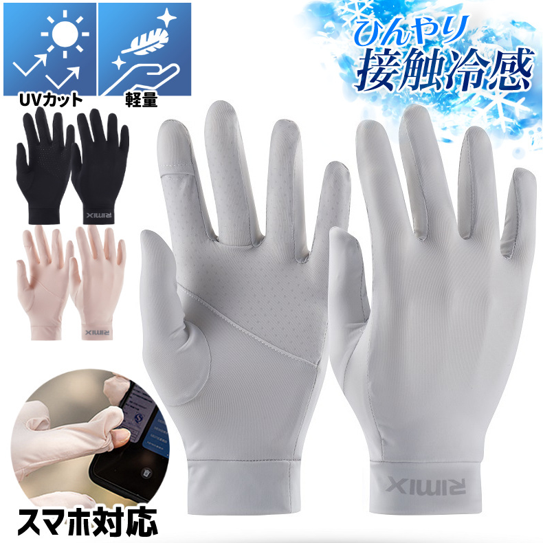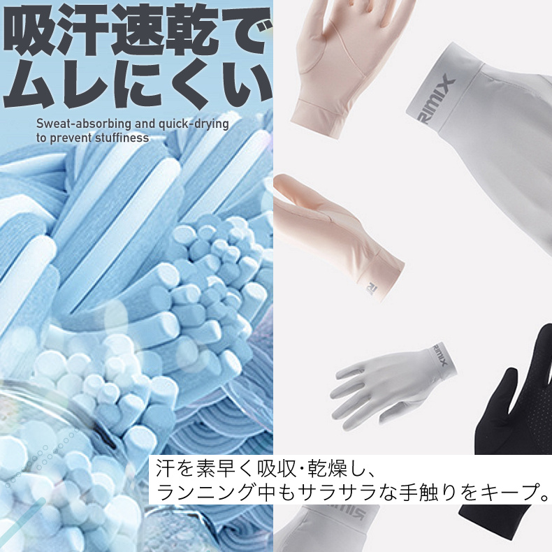 RIMIX3色 スマホ タッチパネル操作 ひんやり 手袋 接触冷感 ランニング UVカット 日焼け止め グローブ 速乾 レディース 軽量 滑り止め