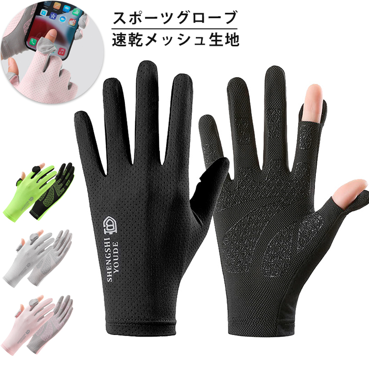 SHEN スマホ タッチパネル操作 手袋 薄生地 ランニング メンズ レディース UVカット 日焼け止め グローブ 速乾 軽量 滑り止め