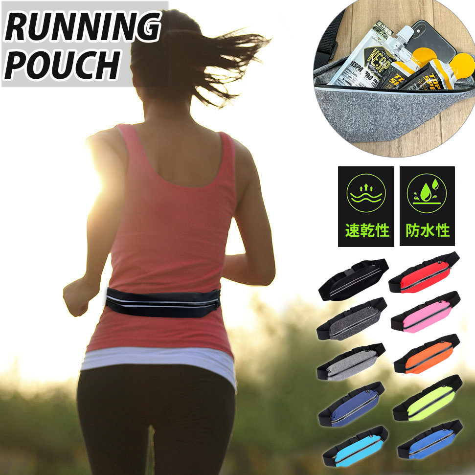 超軽量 ランニングポーチ ウエストポーチ ウエストバック ランニングボトルポーチ 揺れにくい リフレクター 速乾生地 ナイトラン