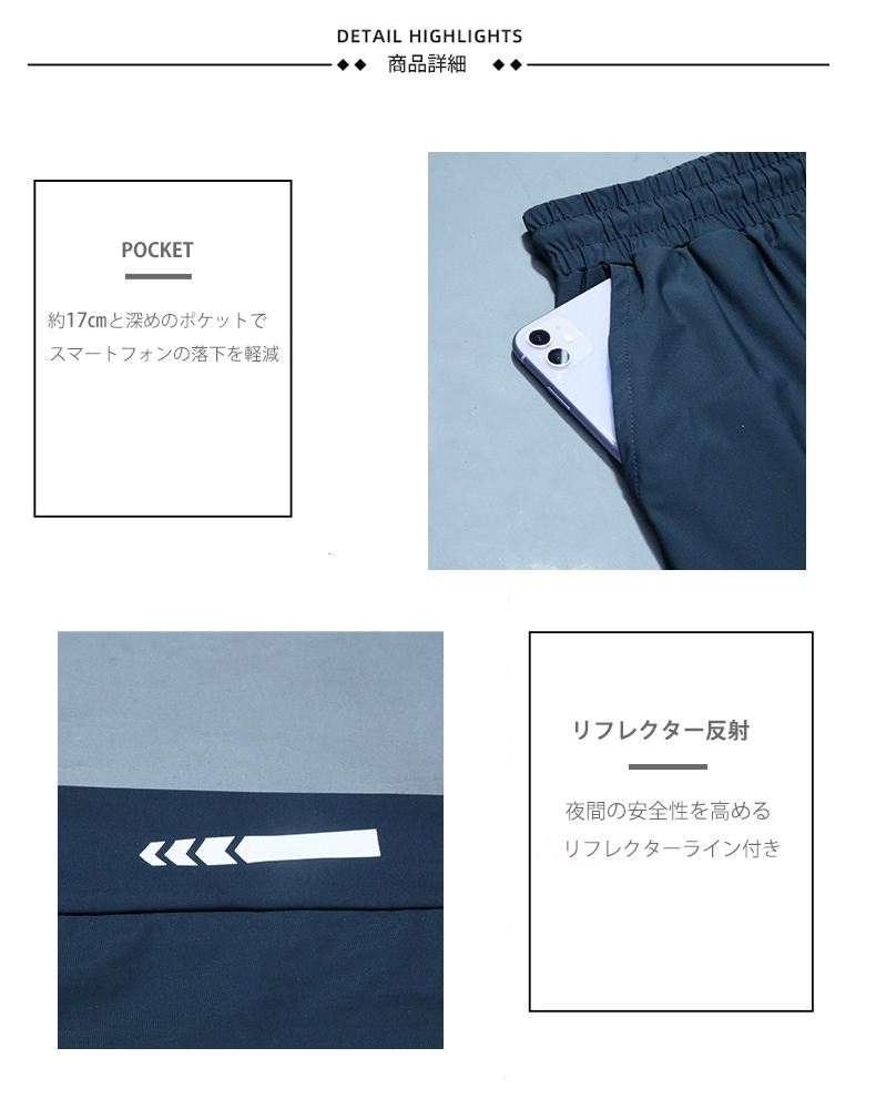 ・夜間のジョギングやウォーキングの安全性を高めるリフレクター反射材付き。