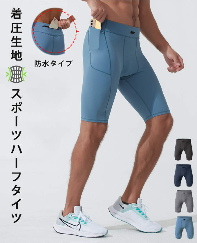スポーツハーフタイツ コンプレッションハーフタイツ 着圧 フィットネス スポーツレギンス スパッツ ハーフパンツ ランニングウェア スポーツウェア メン