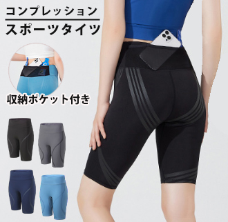ランニングパンツ ハーフタイツ ウエストポケット付き コンプレッション レギンス ショートパンツ 防水ポケット スパッツ レディース スポーツ 超軽量 ク