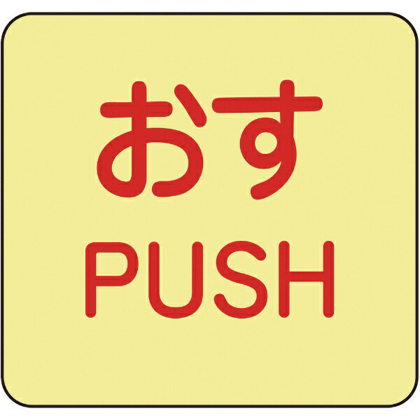 蓄光ステッカー標識 おす・PUSH 50×50mm 10枚組 ドアノブ用 069009 日本緑十字