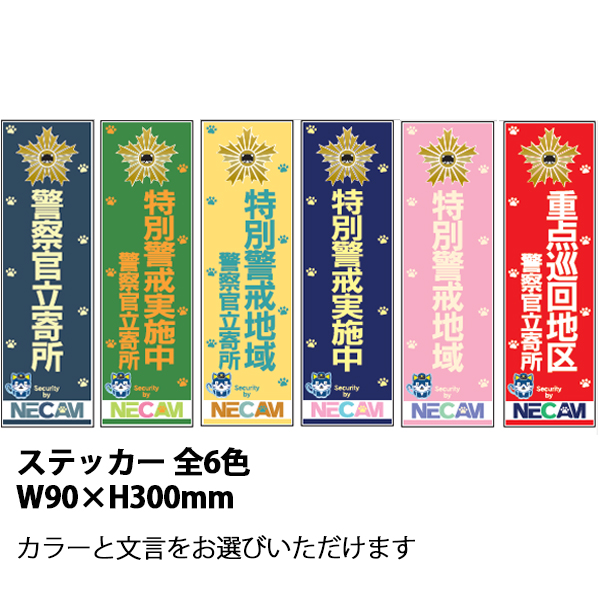 防犯ステッカー 警察官立寄所/特別警戒実施中/特別警戒地域/重点巡回地区 90×300 猫シール