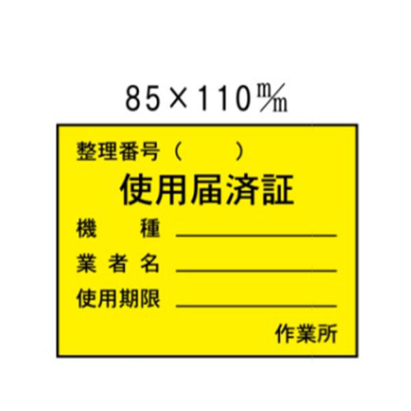 許可証ステッカー 使用届済証 大 H85×W110 WS24