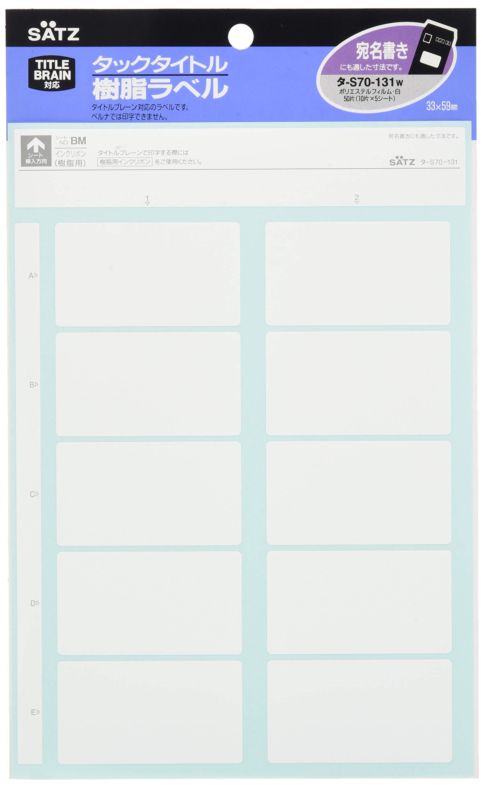 コクヨ タックタイトル 樹脂ラベル 無地 白 宛名書きサイズ タ-S70-131W