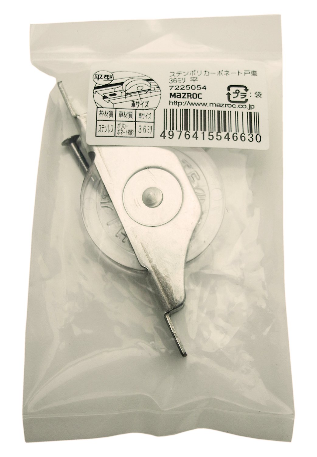 商品名:マツ六 ステンポリカーボネート戸車 36ミリ 平型 7225054
