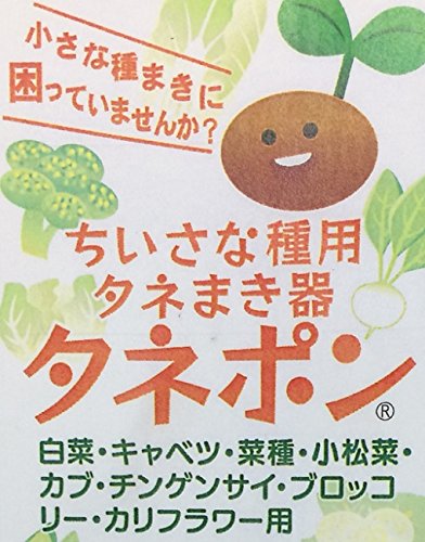 タネポンは指でつまみにくい小さな種まきのために作られた器具です。種の落ちる穴の大きさが約2ミリあります。2ミリより小さくて、1.6ミリぐらいまでの球形の種まき用の器具です。キャベツ、白菜、菜類、小松菜、カブ、チンゲンサイ、ブロッコリー、カリフラワーなどの種まきに利用できます。(ごみやほこりなどは、分解して、取り除いてください。種の形状や大きさなどによっては合わない場合があります。 1粒用、2粒用の部品が入っています。本体のネジをゆるめて交換してご使用下さい。