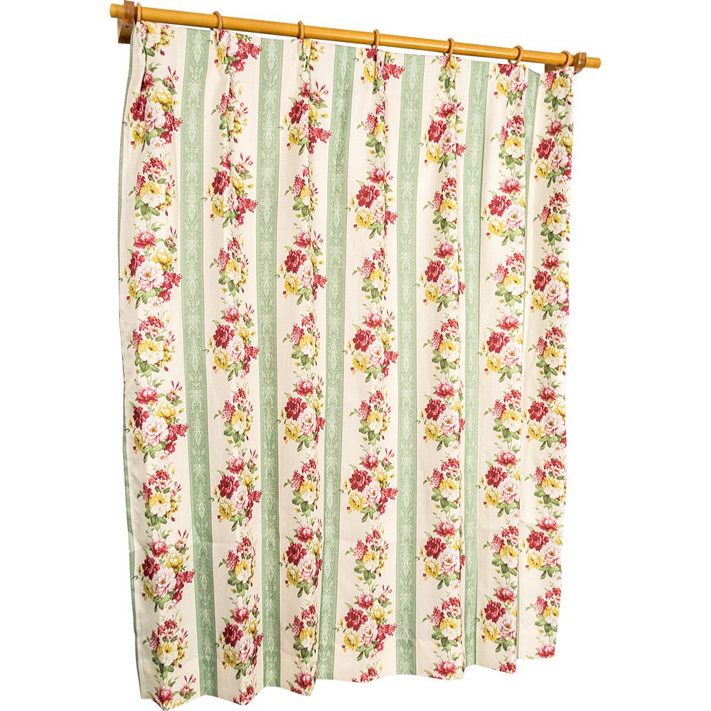 商品名:Arie(アーリエ) 2重加工遮光 形状記憶加工 ウォッシャブル カーテン ストライプフラワー 2枚組 100×110cm グリーン