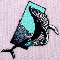 海からザトウクジラジャンプ刺繍のバッジのアイロン付けまたは縫い付けるワッペン